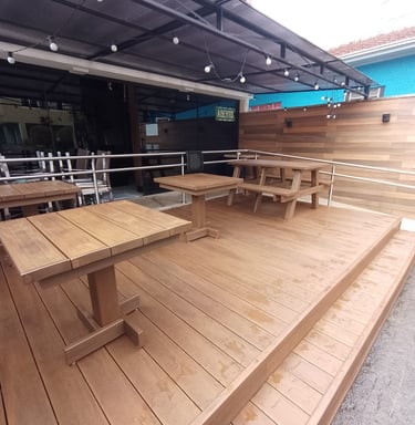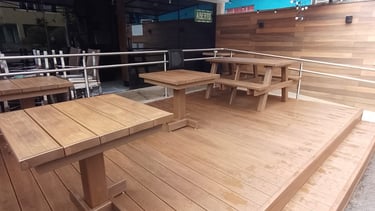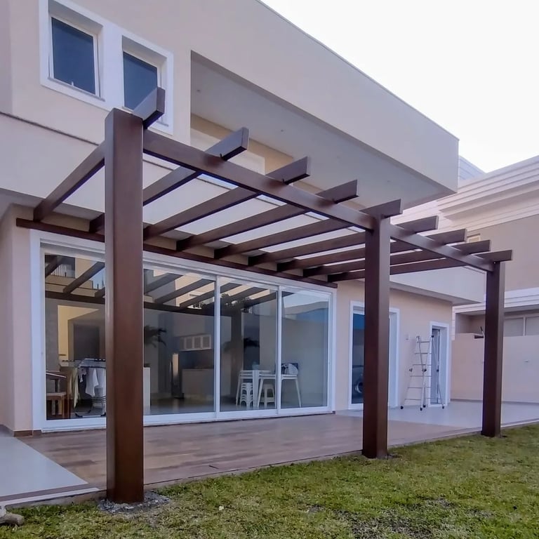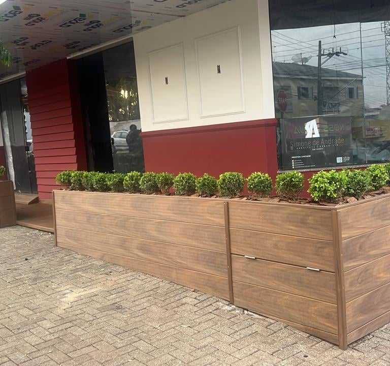 A madeira plástica nos proporciona a estética e o custo zero de manutenção.
