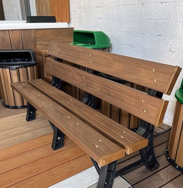 "Escolhemos a Madeira Plast como opção sustentável para bancos e lixeiras em nosso condomínio.