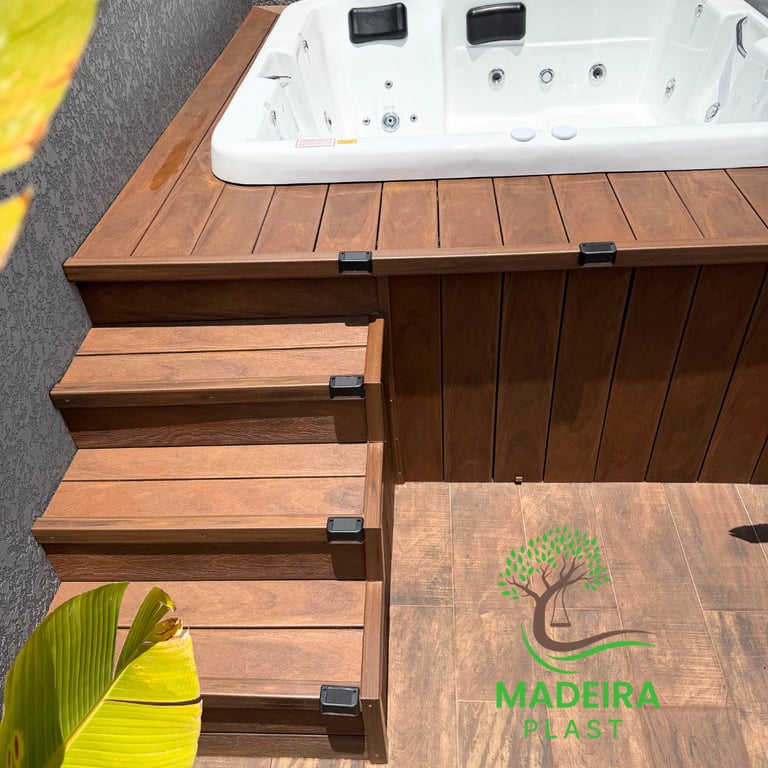 A madeira plástica nos proporciona a estética e o custo zero de manutenção.